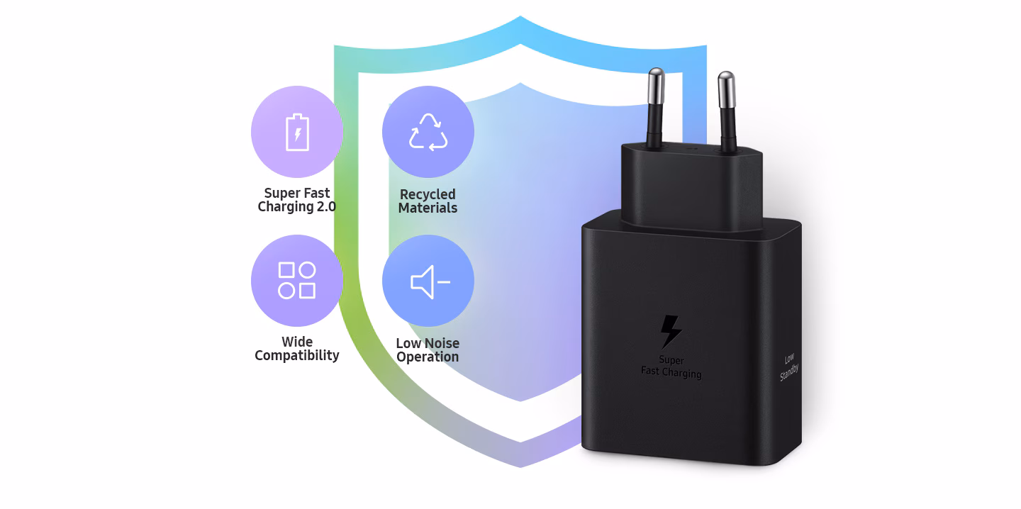With its low standby power, the 50W Power Adapter can save power without compromising performance. Empower your Galaxy devices with this adapter, ensuring they're ready for your next creative venture or business meeting.